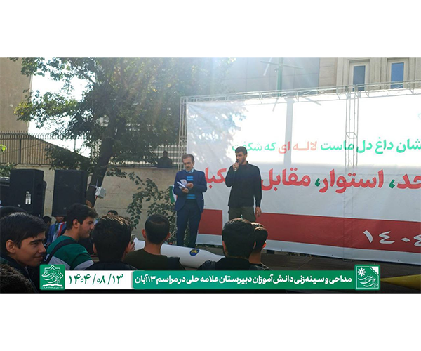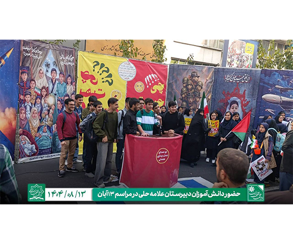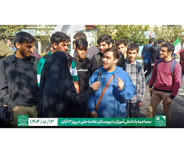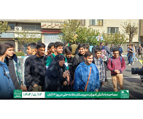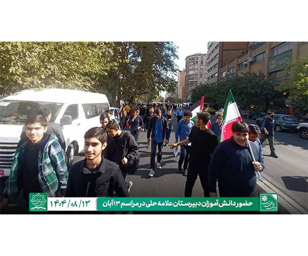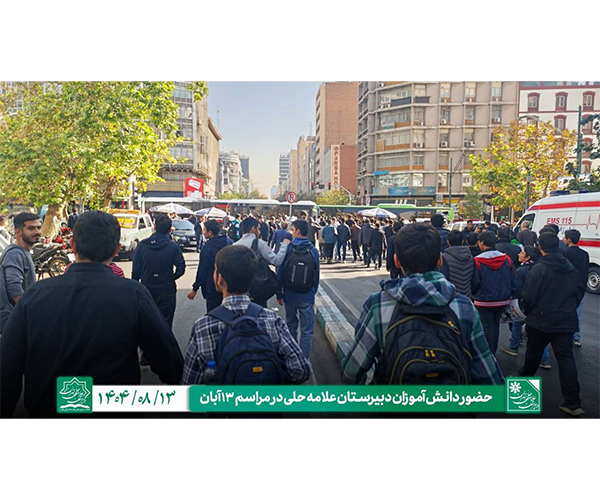حضور دانشآموزان دبیرستان علامه حلی تهران در راهپیمایی دانشآموزی ۱۳ آبان