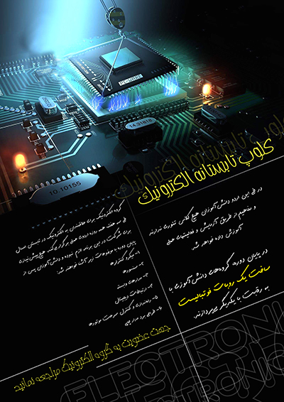کلوپ تابستانه الکترونیک در طی این دوره دانشآموزان هیچ کلاس تئوری ندارند و مفاهیم از طریق آزمایش و فعالیتهای آموزشی ارائه خواهد شد در پایان دوره گروههای دانشآموزی با ساخت یک روبات فوتبالیست به رقابت با یکدیگر میپردازند مطالب مرتبط: پوستر کلوپ تابستانه الکترونیکپوستر کارسوق آردواینو ـ 1393پوستر کارسوق آردواینو ـ 1393پوستر کارسوق آردواینو ـ 1392
